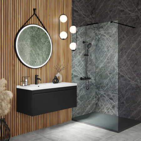 Pure Brushed Brass Floor Standing Bath Shower Mixer & Kit