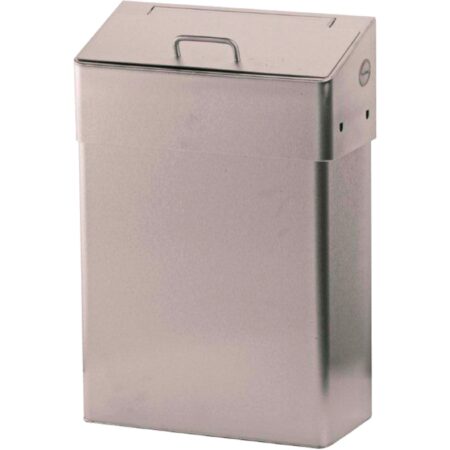 Anti-vandal stainless steel waste bin with self-closing lid,