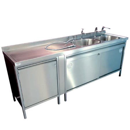 Endoscopy cleaning sink. Double bowl with single handed