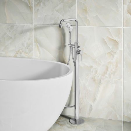 Chrome Round Overflow Bath Filler c/w Easy Clean Waste