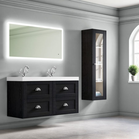 Clayton 800mm Wall Unit Graphite Ash with Carrara Worktop