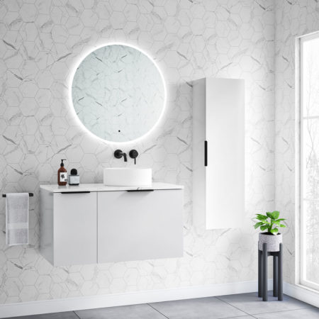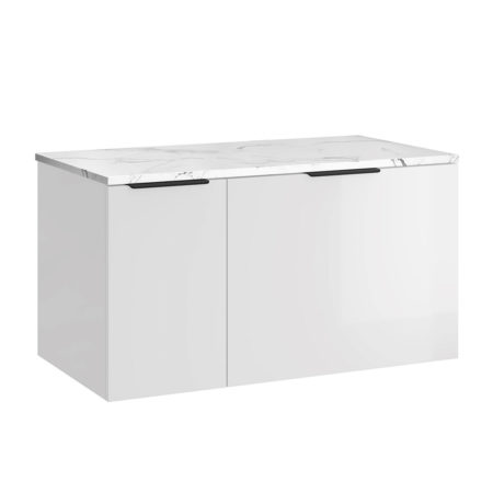 Clayton 800mm Wall Unit Indigo Ash with Carrara Worktop
