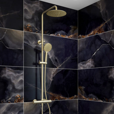Ryver - Brushed Brass Round Exposed Thermostatic Shower