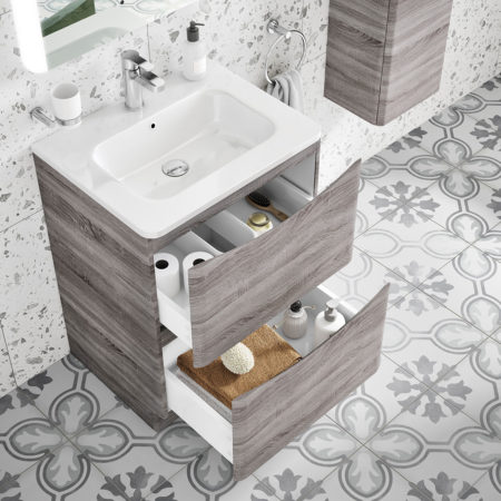 • 800mm 2 Drawer Wall Unit Cyan Oak